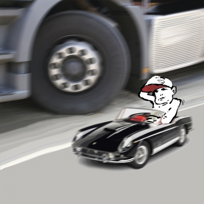 KV szeretett vezetni, ám ilyen hosszú utazásain megszokta, hogy a magasból, felülről látja a világot. Most, hogy saját autójában ülve előzgette a kamionokat, hirtelen nagyon kicsinek érzete magát. „Ezt nevezik békaperspektívának” – jutott eszébe. – „Ilyen lehet kisgyereknek is lenni. Mindenki lenéz rád.” Aztán észrevette, hogy éppen egy nagy KV feliratos kamion mellett készül eldodzsemezni. Párat villantott, majd miközben elhaladt