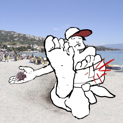 A parton a gyerekek fél perc alatt ledobálták a ruhájukat és a törülközőjüket, és máris rohantak be a vízbe. „Csak óvatosan” – szólt volna utánuk, de már csak magát vagy Pannát figyelmeztethette volna, így inkább ő is gyorsan letette a ruháit és a csomagokat, és futott be a vízbe a gyerekek után. Még pár lépést sem sikerült megtennie a vízben, mikor hirtelen égő fájdalom hasított a talpába. Nagyot ordított, majd apró léptekkel kisántikált a partra.